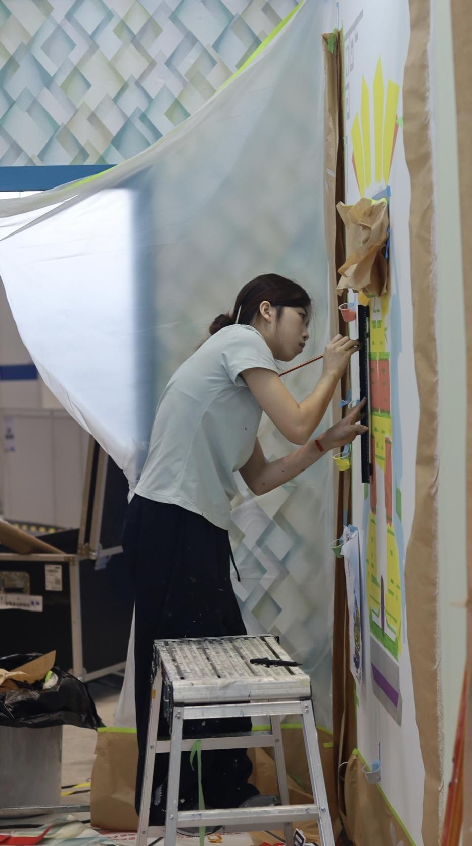 陈冰莹正在完成“油漆与装饰”赛项参赛作品