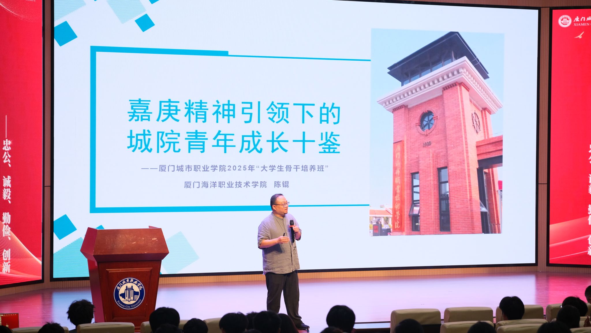 10月30日,学校邀请厦门海洋职业技术学院陈锟老师为全校大学生骨干培训班学员及各院系学生骨干作《嘉庚精神引领下的城院青年成长十鉴》主题报告。报告通过鲜活的历史故事阐释嘉庚精神的时代价值,并从信仰、认知等十个维度,为学生骨干指明了成长路径。