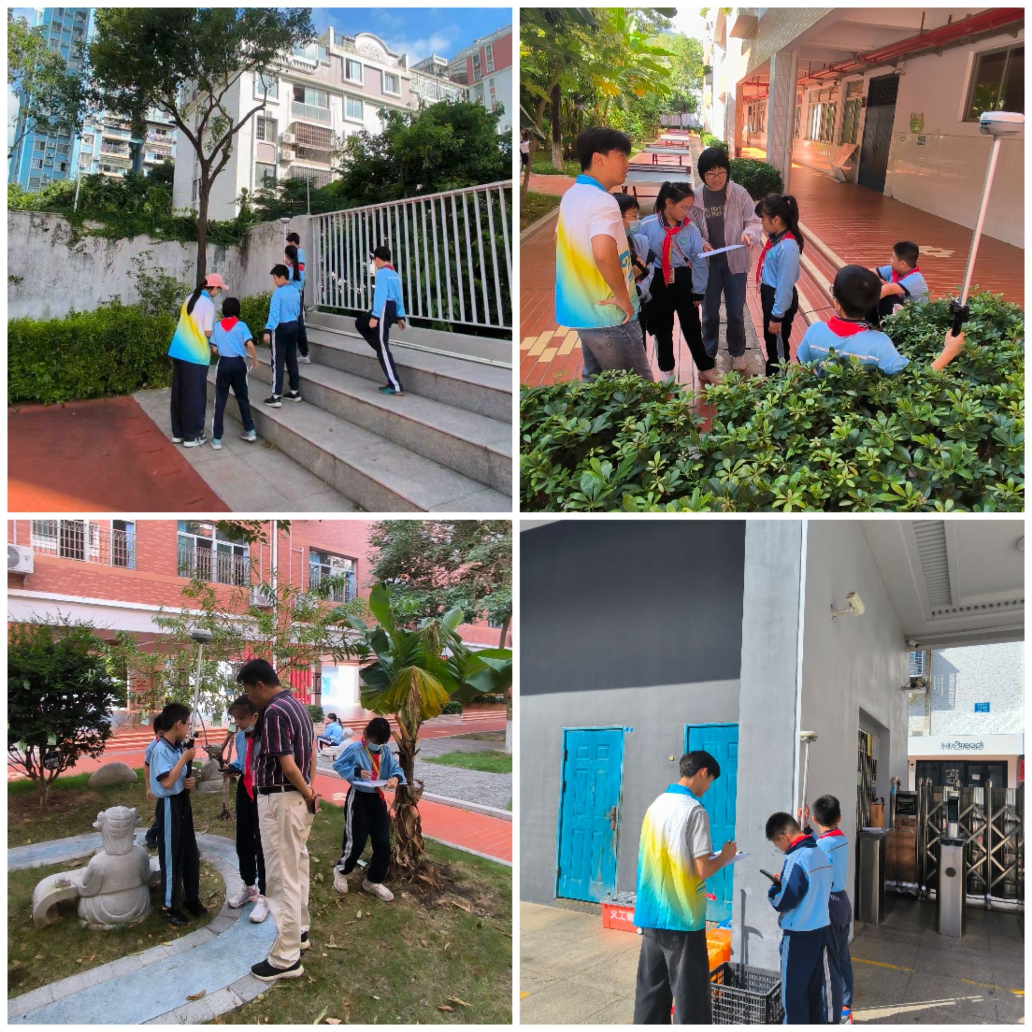 活动分为科普讲座与实地测量两个环节,建筑工程学院高级工程师柯宗乔作“测绘数据的真实性与廉洁做人的底线”科普讲座,从地图的精准性切入,结合三维实景模型展示了测绘技术的广泛应用,引导学生理解数据背后所承载的职业责任与社会诚信。讲座后,前埔南区小学的学生们在测绘协会师生指导下,分组使用RTK测量仪器进行校园地形测绘实践,亲身体验数据记录和地形草图绘制过程。