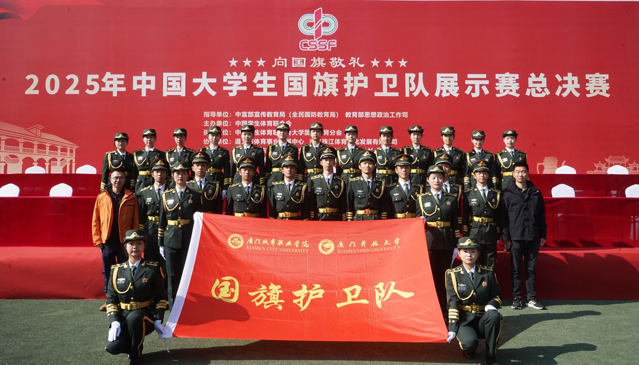 11月28日,2025年中国大学生国旗护卫队展示赛总决赛在贵州遵义落下帷幕。我校国旗护卫队凭借出色表现,荣获乙组女子队列动作一等奖、升旗展示一等奖,并以总分第二名的优异成绩实现历史性突破。同时,我校代表队还在乙组混编队列动作和升旗展示两个项目中双双斩获二等奖。