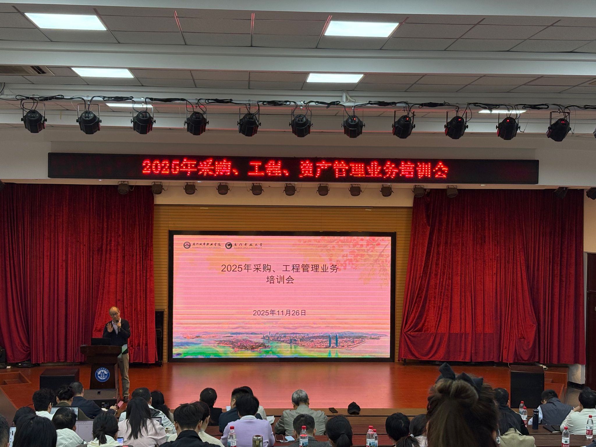11月26日,我校在4区101举办2025年采购与工程管理业务培训会。副校长林春才,纪检监察与审计室主任陈娜萍,校内各单位业务分管负责人、教学单位专业主任、党总支及支部纪检委员、各部门采购员等120余人参加会议。