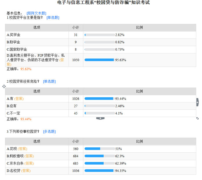 针对近期发现的数起学生遭遇电信网络诈骗和参与校园贷事件,电子与信息工程系开展了“警惕借贷·防范诈骗·微答卷”线上“校园贷·防诈骗”知识竞答活动。通过精心设计的题目,引导同学们提高安全防范意识,远离电信网络诈骗和不良校园贷陷阱,自觉抵制恶意“校园借贷”,树立正确的价值观和消费观。