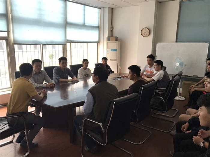 在随后的座谈会上,卓义滨详细介绍了行业发展趋势、公司概况、主营业务及人员需求等情况,对2015级数控专业“学徒制”学生在实习阶段的表现给与了充分肯定。15级数控学生汇报了轮岗实训的体会与收获。系领导及相关专业教师叮嘱学生,要严格遵守公司的管理规定,虚心向企业指导老师请教,努力克服遇到的困难,培养自己吃苦耐劳的精神,高质量完成现代学徒制轮岗实训的学习任务。同学们纷纷表示珍惜“现代学徒制”顶岗实习机会,努力提升操作技能,为自己今后的职业生涯打下较好的基础。