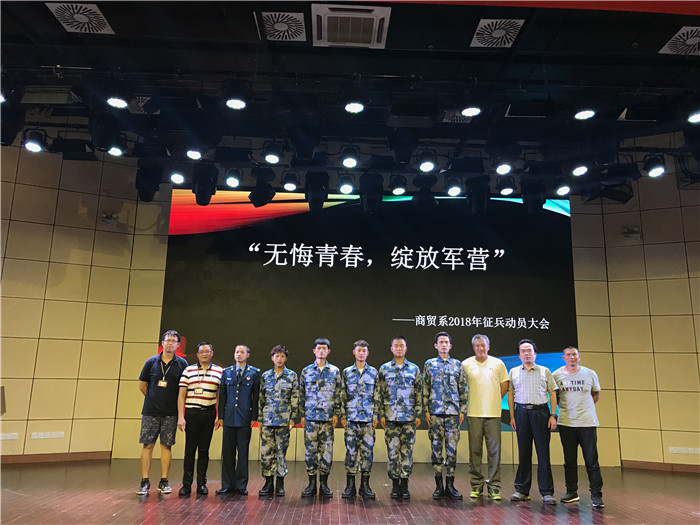 2018年5月16日晚,商贸系“无悔青春 绽放军营”主题演讲大赛在演播厅激情上演。这次演讲比赛除了自愿报名参加的同学,还邀请了8位商贸系退役军人学生。他们结合各自经历,利用照片、视频等媒介,从不同视角和层面,声情并茂地讲述了一段段成长与成才的故事,感染了在场的每一个人。