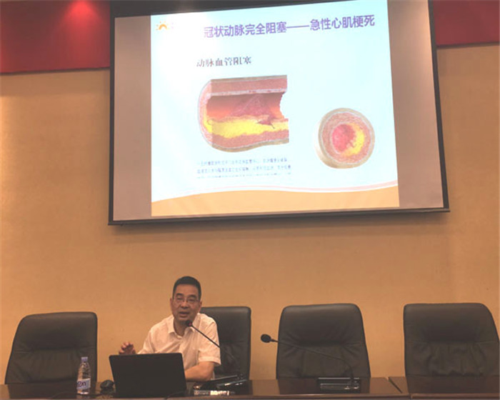 刘文辉主任在心脏疾病特别是冠心病和心肌梗塞的病因和病理机制方面给大家上了一堂图文并茂、内容丰富、指导性强的健康知识课。现场还进行了互动问答,老师们就心脏防护和治疗的相关问题提出疑问。