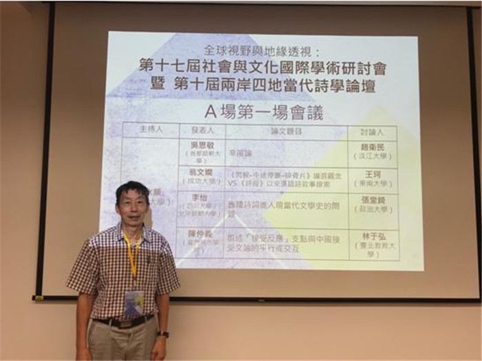 5月18日,第十七届社会与文化国际学术研讨会暨第十届两岸四地当代诗学论坛在台湾淡江大学召开。出席会议的有日本、韩国、马来西亚、新加坡、美国等国学者。我校人文社科与艺术系陈仲义教授在第一会场宣讲了他的论文《翦论“接受反应”支点与中国接受文论的平行或交互》。