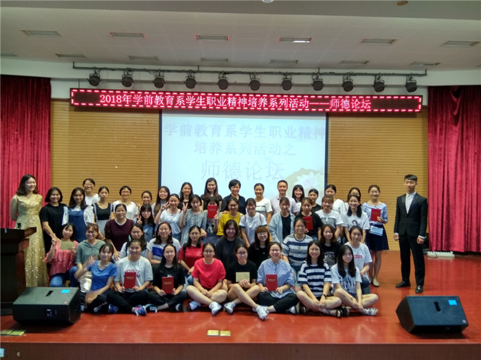 学前教育系做为学校“职业技能培养与职业道德培育高度融合”项目试点,在加强培养学生的职业技能的培养的同时,特别注重对职业道德的培育,而且将二者有机融合,贯穿于教育的整个过程。系主任曹绍炼在讲话中解读以“爱与责任”为核心的师德内涵,强调师德对作为幼儿健康成长启蒙者和引路人的幼儿教师的重要性,希望同学们通过本次活动,加深对幼儿教师“师德”的理解,增强自我修炼的意识,并在日常的学习生活中践行;也要求专业教师为人师表,在教育教学的过程中提高对学生师德培育的自觉性。
