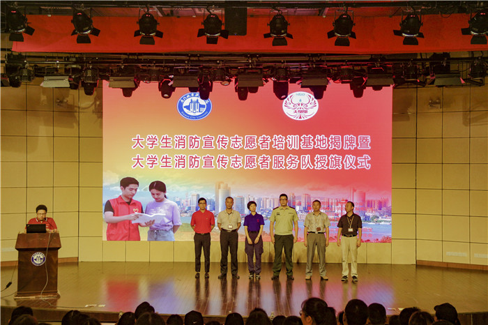 到场领导嘉宾共同为大学生消防宣传志愿者培训基地揭牌,为人艺系团总支学生会“大学生消防安全志愿者宣导队”授旗。随后,火凤凰消防安全志愿者协会何惠玲会长做了消防安全知识专题讲座,组织学生观看了消防安全知识宣传片,带领学生参观消防设备。