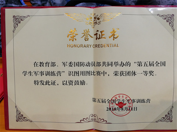 7月30日——8月11日,由我校军魂社16学前B李嘉欣、17会计A曾蕾、16市营A杨中容、17飞修A黄伟鸿与仰恩大学、南安一中、莆田职业技术学校四所学校共16名同学组成的福建省学生代表队在第五届全国学生军事训练营练兵比武活动中,团结一心、勇于拼搏,荣获了核生化防护、识图用图、军事运动会项目3个一等奖,以及轻武器射击、电磁频谱管控等项目2个二等奖、2个三等奖,一等奖总数和总成绩均名列全国第二。