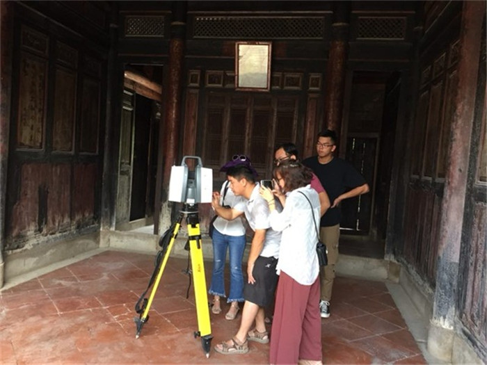 在考察中,尝试采用先进的3D扫描仪+无人机航拍等设备对其中最有代表性的【蔡浅厝】古建筑进行测量、扫描。希望通过后期BIM技术对采集数据进行整理,形成第一手古建信息化图纸,为将来蔡氏古民居建筑群复原修复提供依据。