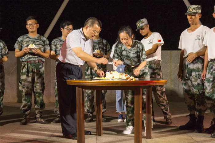 海上生明月,天涯共此时。联欢活动在我校吉他社的一首《春风十里》歌声中拉开序幕,我校星级社团和不同院系军训方阵准备了军歌合唱、流行歌曲串烧、现代舞蹈、民族舞蹈等精彩节目。期间,最温馨的一幕是全体2018级新生为中秋节出生的9名2018级同学过集体生日,我校党委书记蒋先立老师为他们切了生日蛋糕并送上生日祝福。