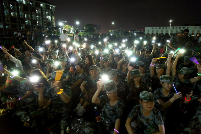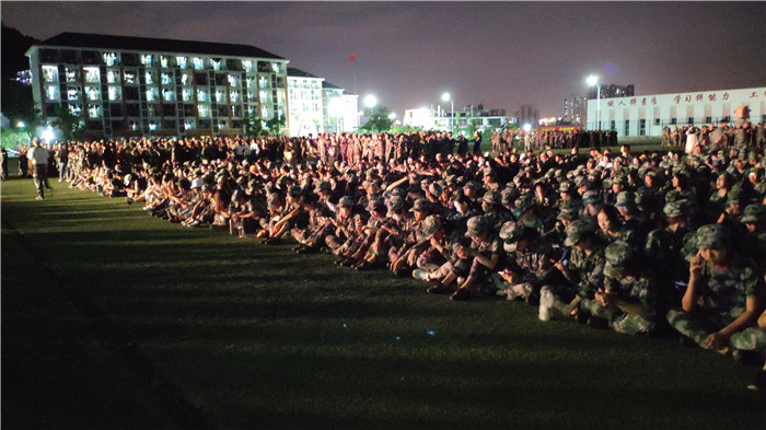 为更好地传播中华传统文化,弘扬人民军队优良作风,践行学校“大爱”教育理念,提升军训成效,9月24日晚,我校在南校区军训场举行2018级新生迎中秋庆国庆暨“嘹亮军歌我来唱”联欢活动。