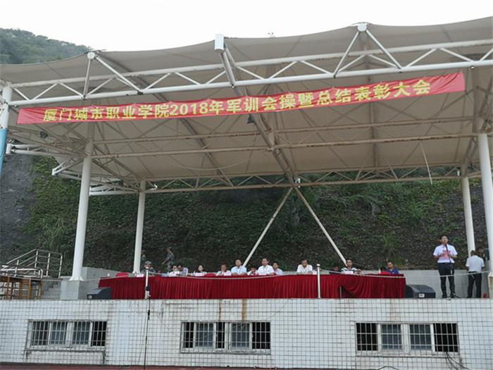 会操结束后,进行了军训表彰。学校对本次军训中涌现出的优秀学生、优秀教官、优秀指导员和优秀后勤保障工作人员分别进行了表彰。学生工作处处长陈小明宣读表彰决定,校领导们为他们一一颁奖。优秀学员代表旅游系2018级学生林雨欢在发言中表示将把军训成果转化为学习动力,积极学习实践,努力成长成才。优秀教官代表在发言中希望同学们在今后的学生生活中,继续发扬军训时的优良作风,秉承校训,吃苦耐劳、不怕困难、严守纪律,再创佳绩。王育培副书记在总结发言中充分肯定了本次军训的成果,对全体带训教官的辛勤付出表示感谢,对2018级新生们取得的成绩表示祝贺,对辛勤工作的学工干部和后勤保障干部表示慰问。他指出,与往年相比,今年的军训融入了“四个第一”的新元素:第一次在新生入学后进行军训、第一次启用退役复学学生为带训教官、第一次在军训期间举办了富有意义的中秋晚会,也是2018级新生们通过长达两周的全天候不间断的高强度军训,向学校交上第一份满意的答卷。最后,他借用习近平总书记对青年学生的寄语,希望全体2018级新生把军训锤炼出来的训练成果,转化为源源不断的学习动力,在即将展开的知识学习、技能培养、社会实践、创新创业等三年的学习生涯中,珍惜时光、刻苦学习、遵规守纪、向上向善,努力践行“明德强技、笃行致用”的校训,努力锻造具有城院特质的“三好人”,成为具有良好人文素质和职业精神的高素质技术技能型人才,成为德智体美劳全面发展的社会主义建设者和接班人。