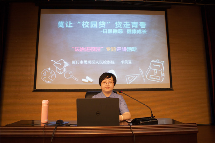 近年来,在校生因“校园贷”而身陷困境、受到侵害甚至违法犯罪的报道屡见报端,而“校园贷”的广告在校园、网络上仍大行其道、屡禁不止。9月19下午,厦门市思明区人民检察院检察官李美霖为我校机械系与轨道学院2018级新生带来了一场以“校园贷”为主题的普法讲座。