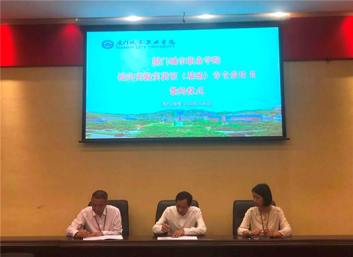 会上还举行了“厦门城市职业学院校内实验实训室(基地)安全责任书签约仪式”,吴松青代表学校与教务处、保卫处、各院系签订了校内实验实训室(基地)安全责任书。
