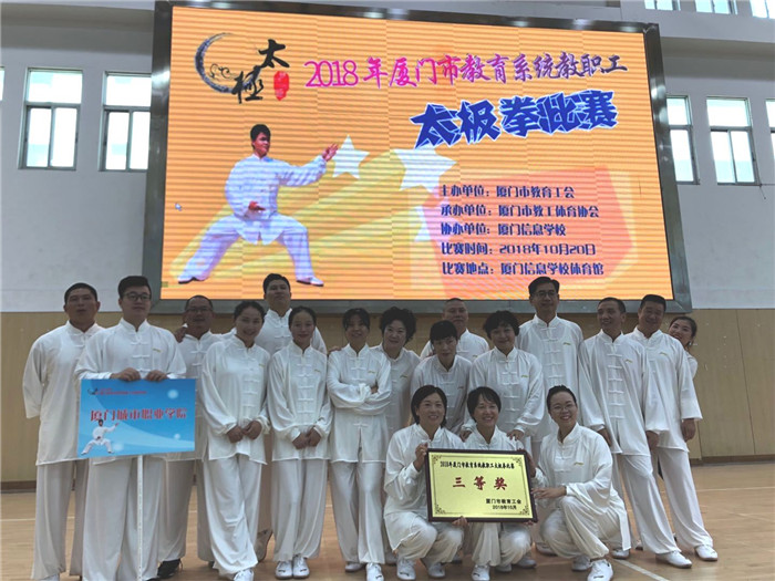 2018年厦门市教育系统教职工太极拳比赛于10月20日在信息学院圆满落下帷幕,本次比赛共有18支队伍参加,我校太极拳队获得第八名,荣膺三等奖。