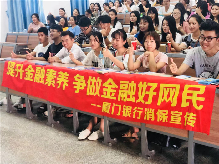 财金系先后邀请厦门银行湖滨支行和中国建设银行股份有限公司厦门市分行的专业人员为大二、大三学生展开“提升金融素养、争做金融好网民”和“金智惠民—进校园”系列培训宣传活动,为学生讲解了防范电信诈骗、校园贷、金融网络安全等问题,通过典型案例把暗藏在校园贷背后的复杂高额利息率曝光出来,让同学们了解到校园贷的危害,加强金融风险防范意识,树立正确消费观念,远离校园金融风险。进一步增强了同学们的金融安全意识和防诈骗的能力, 从根源上减少校园金融风险的发生。