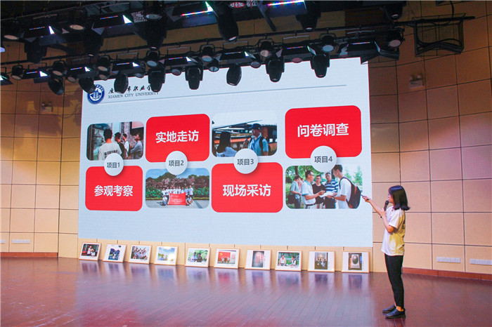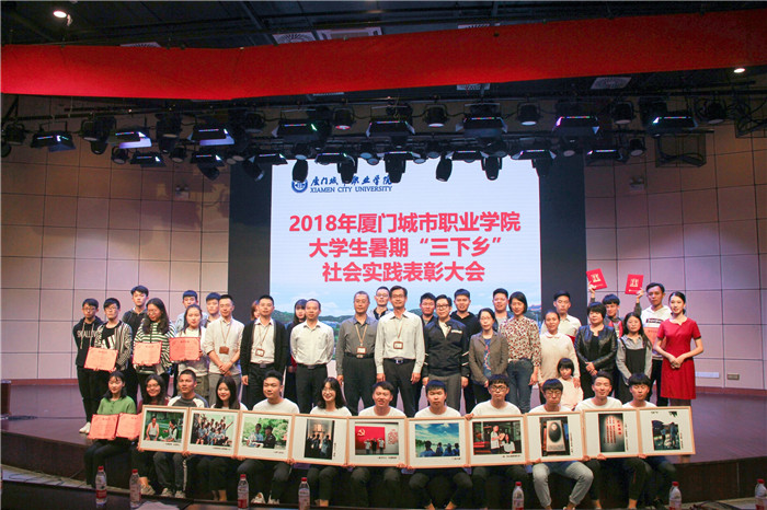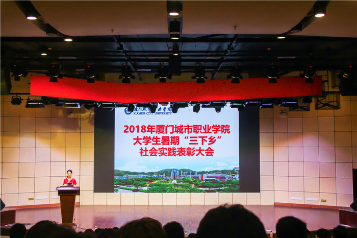 会上,校团委书记黄超宣读了《关于表彰厦门城市职业学院2018年大学生暑期“三下乡”社会实践优秀团队、先进工作者、先进个人的决定》,城建系“青山村生态旅游区规划社会实践队”等8支团队荣获“社会实践优秀团队”; 电子系郑燕红等8名教师被授予“社会实践先进工作者”;电子系黄志杰等12名同学被授予“社会实践先进个人”。随后,获奖代表依次上台,通过PPT、视频等方式,展示了精彩的实践经历,分享了对实践活动的感悟与收获。
