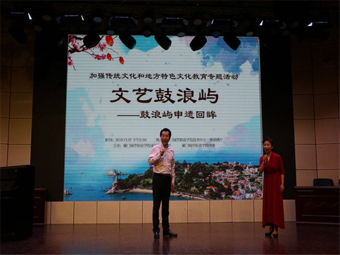 11月27日下午,我校通识教育学院和校团委在技术中心演播厅举行了一场丰富多彩的“文艺鼓浪屿——鼓浪屿申遗回眸”专题活动,副校长吴松青、通识教育学院教师以及各系学生参加了本次活动。