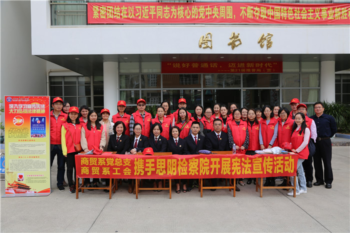 在我国首个宪法宣传周暨12.4宪法宣传日来临前夕,我校商贸系党总支、商贸系工会与思明检察院共同开展了宪法宣传社会服务活动。