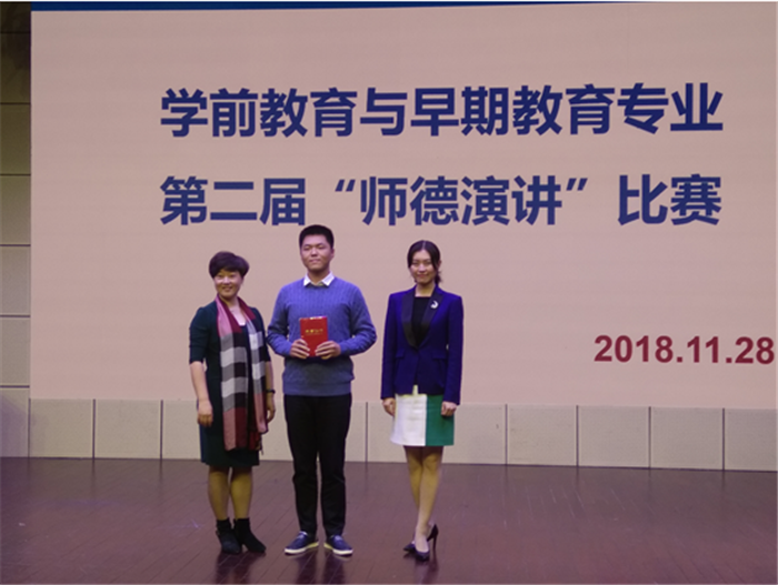 此次活动是在“师德讲座”和“师德论坛”的基础上,在大三学生中举办的“师德演讲”比赛活动,由学前教育专业带头人林雪卿老师牵头的“学前教育专业学生职业精神培养”课题组策划,以《教育法》、《教师法》、《幼儿园管理条例》、《幼儿园工作规程》以及《幼儿园教师专业标准》为依据,围绕幼儿教师“爱与责任”的核心职业精神,由学生发表对这一核心精神的认识和理解,从而引导学生自觉树立正确的儿童观、教育观和教师观。本次“师德演讲”比赛共有16名同学参加决赛,学前教育专业2016级B班张鑫鑫同学演讲的《我的学前之路》获得一等奖。