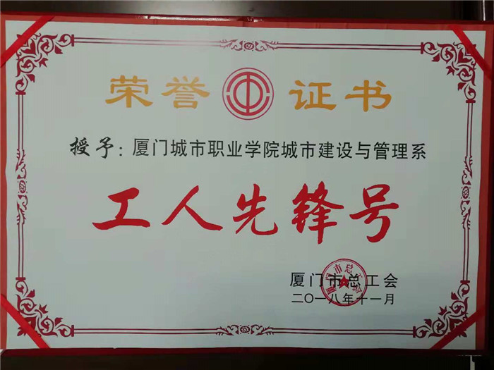 近日,厦门市总工会命名了一批充分发挥工人阶级主力军作用,在建设“五大发展”示范中做出突出贡献的先进集体为厦门市“工人先锋号”,我校城市建设与管理系榜上有名。