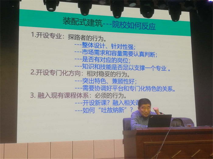 赵研是中国建设教育协会副秘书长、黑龙江建筑职业技术学院教授、国家“万人计划”教学名师和国家一级注册建筑师。赵研从高职土建施工类专业目录、近年来有关数据、行业转型发展对专业建设的影响、如何优化专业建设、如何创新课程模式和关于BIM和装配式建筑等六个方面,为师生们在行业转型发展背景下做好高职土建类专业教学改革指明了方向。