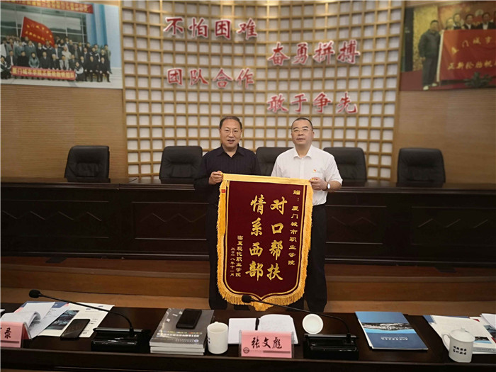 临夏现代职业学院是我校对口帮扶单位。在过去的两年间,我校在专业建设、师资队伍与管理队伍建设、学生学习等方面帮扶对方的学前教育专业,并取得实际的成效。张文彪对我校提供的帮助给予充分肯定并赠送锦旗表示感谢,同时,希望进一步充实帮扶内容、丰富帮扶形式与加大帮扶力度。蒋先立指出,我校高度重视对临夏现代职业学院的帮扶工作,义不容辞地按中央的部署与市委、市政府的安排,循序渐进地开展工作。他希望未来两校间相互学习,相互借鉴,共同进步。