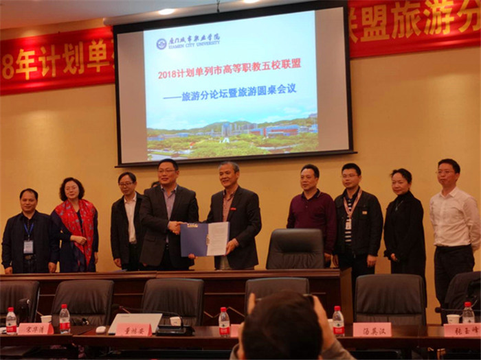 12月24日,参加2018年计划单列市高等职教五校联盟论坛的深圳职业技术学院、大连职业技术学院、青岛职业技术学院、宁波职业技术学院的旅游类专业二级学院领导嘉宾,在学校会议二齐聚一堂,召开旅游分论坛暨旅游圆桌会议,聚焦旅游类专业国际化建设。