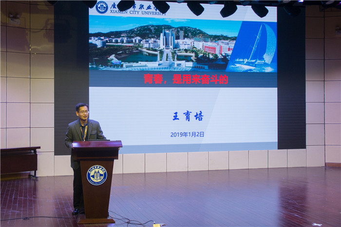 最后,王育培作了题为《青春,是用来奋斗的》的专题报告,报告分为“他们的青春,奋斗求索见真理”、“我们的青春,‘宅’在深处壮志未酬”、“未来已来,青春扬帆正当时”三个主题。王育培从毛泽东、习近平等党和国家领导人的青年奋斗史展开,鼓励广大同学要善于把握时代机遇,努力奋斗;同时也指出了当今大学生存在的“三失”、“三无”现象,以及少数学生干部中的“官本位”思想、“浮躁之气”等情况。为此,他对同学们提出五点要求:一要树立起家国情怀,践行共同理想;二要敢于有梦,勇于追梦,勤于圆梦;三要重树信心,重拾兴趣,重建人格,重塑形象;四要敬业勤勉,勤学真练;五要乐群善为,敢于奉献。他呼吁同学们积极参与学生组织与社团活动中,努力提升个人交际能力,充实自我,争做新时代下的社会主义接班人。