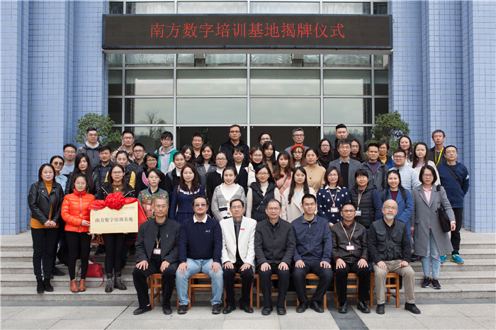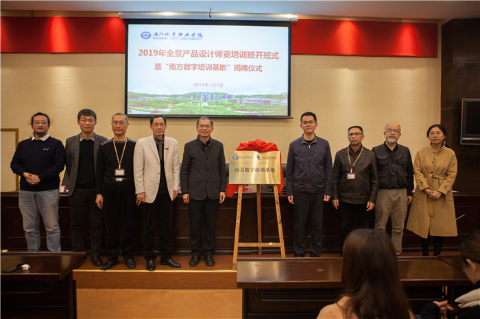 2019年1月7日下午,第一期全景产品设计师资培训班开班式暨“南方数字培训基地”揭牌仪式在我校举行,校长唐宁、副校长吴松青、校长助理王福龙、福建省网龙普天教育科技有限公司负责人等参加了仪式。