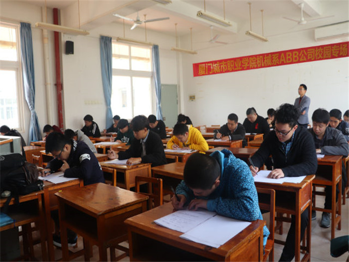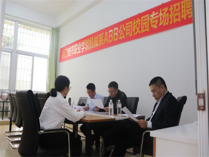 2月25日至3月1日,广东四会ABB互感器有限公司人力资源部、生产制造部、质量检验部的负责人来校对机械系“ABB岗前学习班”的同学进行结业验收测评并召开公司专场招聘会。