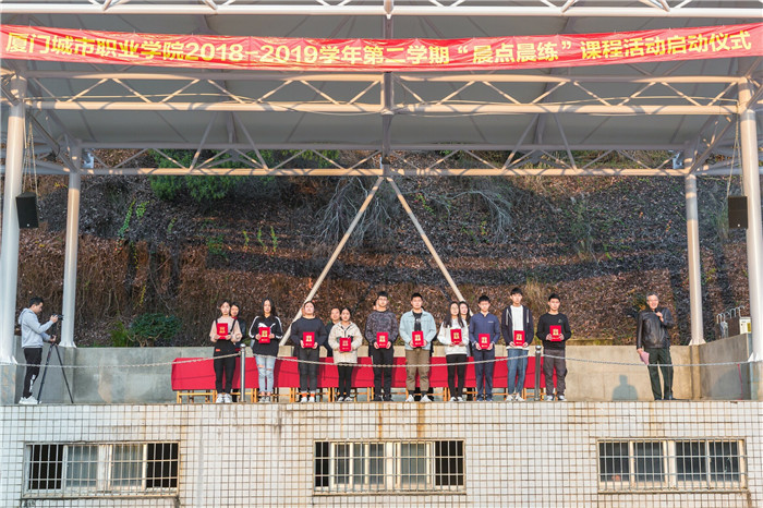 3月12日清晨,我校于南校区田径场举行2018-2019学年第二学期“晨点晨练”课程活动启动仪式。校党委副书记王育培,学生工作处、团委、体育教研部、各系党总支等部门负责人,辅导员及2017、2018级全体学生参加了本次活动。