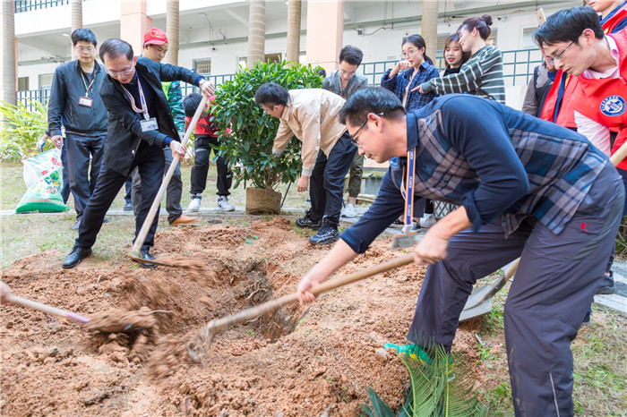 第41个植树节之际,校长唐宁、校党委副书记王育培等校领导和师生员工代表一同参加位于南校区笃行楼广场两侧的校园植树活动。
