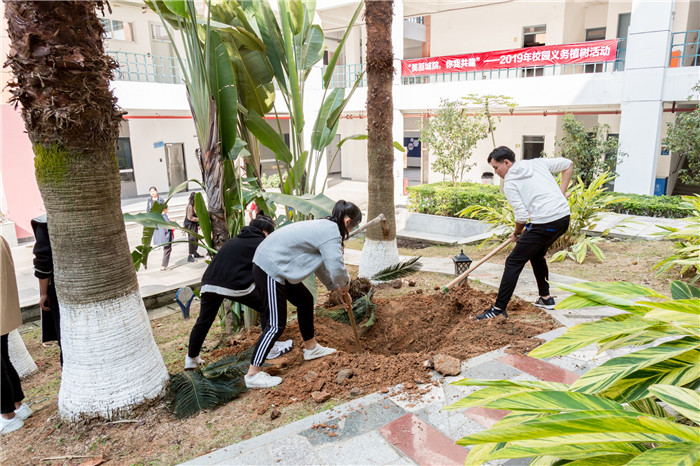 植树活动现场气氛热烈。大家热情高涨,分组劳动配合默契,挥锹铲土挖坑、扶苗培土、浇水平土道道工序规范认真,整个劳动场面繁忙而有序。 此次义务植树活动的开展,丰富了我校三月学雷锋系列活动的内涵,提高了全校师生植绿、爱绿、护绿的责任意识;同时也是一次非常生动的实践课程,它将德智体美劳的教育真正落实在实践中,教育引导广大青年学生崇尚劳动、尊重劳动,培养劳动观念、体验劳动价值。