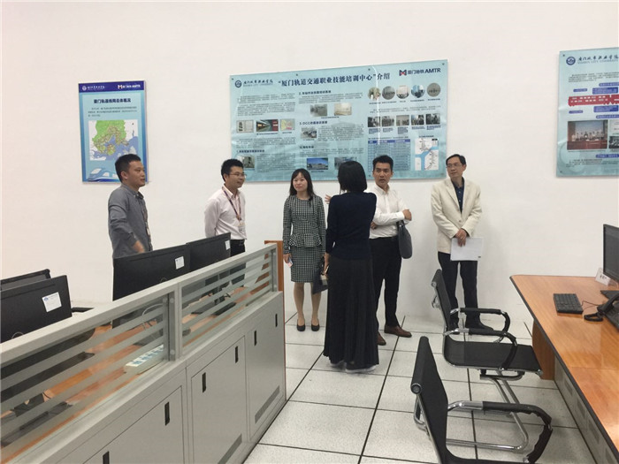 吴松青就学校申报“厦门市人才培训基地”项目的总体情况进行了汇报,同时,介绍了我校在促进高素质高技能人才培养所做的工作。随后,专家组实地考察了先进制造实训中心、轨道员工培训中心、创新创业园区、腾讯云工坊、测绘行业职业技能鉴定福建站厦门培训点等,详细了解各中心在教学科研和支撑产业人才培养所发挥的作用,听取中心的布局、功能、管理情况和面向学生开放使用的情况汇报。