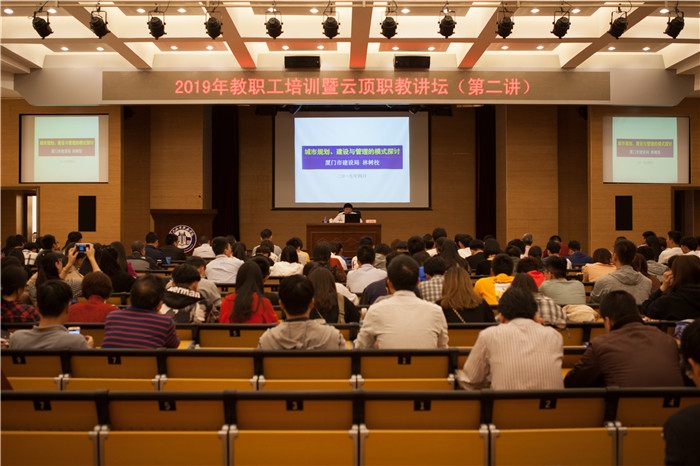 4月17日下午,我校2019年云顶职教讲坛第二讲在会议中心一举办,讲座由厦门市建设局党组成员、巡视员、副局长林树枝博士主讲。我校党委副书记王育培,党委委员、副校长陈旭辉,全体中层干部、云顶人才、办公室、后勤管理处、质量监督与保障办公室、科研处、校企合作实训中心、基建办公室、教师发展中心等部门教职工,城建系师生,共200余人参加了本次讲座。讲座由陈旭辉主持。