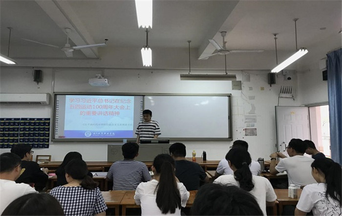 5月8日下午,我校习近平新时代中国特色社会主义思想读书社成员在指导老师的引导下,深入学习和领会习近平总书记在纪念五四运动100周年大会上的重要讲话精神并分享了心得。
