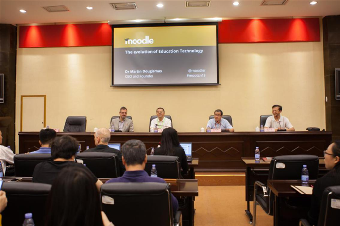 陈旭辉副院长代表学校向到访的来宾表示欢迎并致欢迎辞。上午,马丁·多格玛斯博士作了“未来一百年的教育信息技术”的主题演讲,含Moodle哲学、教育者需求、目前项目和未来发展四个部分,他还介绍了Moodle公司的文化、功能、使用方法,并阐述了开放教育平台的意义,分享了教师做好在线教育需要具备的条件和素质。下午,与会者就Moodle平台技术的使用和发展等问题展开了热烈的讨论,马丁·多格玛斯博士解答了大家提出的各类问题。最后大家达成了中外Moodle社区应该加强交流合作,助力国际开放教育的共识。