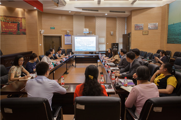 陈旭辉简要介绍了我校国际化办学情况,希望我校能与泰国博仁大学遴选优势专业开展合作,并探讨交换生项目、教师科研合作项目以及共同招收国际学生等项目的合作方式。