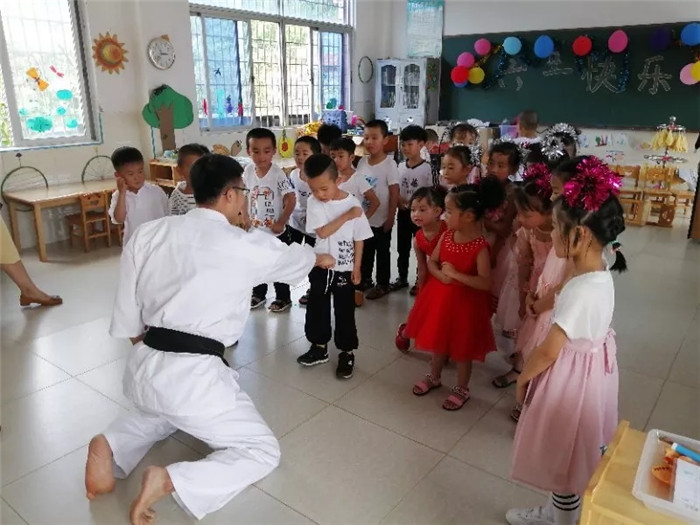 针对校园欺凌案件和儿童受侵害的案件频发等热点,志愿者联合我校极真空手道协会开展儿童安全教育与演示。在艺设教研室的支持下,4名志愿者带领小朋友们做出了自己心怡的扎染图案。刚刚获得中国舞蹈大赛厦门站伦巴比赛一等奖的大姐姐为小朋友们精心准备了国标舞的基础教学,小朋友们一板一眼地认真学着。