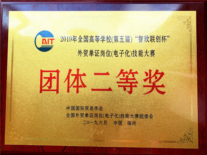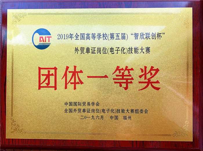 6月1日,由中国国际贸易学会、中国外贸单证岗位技能大赛组委会主办的全国高等学校第五届“智欣联创杯”外贸单证岗位(电子化)技能大赛在福州外语外贸学院开赛。我院17级国贸专业黄彩英、陈倩、裴夏莉、朱贞雪和黄钊乾、郑琳琳、郭春蓉、冯伟霞8名同学共组成两个参赛队参赛,最终取得了团体一等奖和团体二等奖的优异成绩。