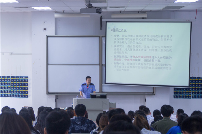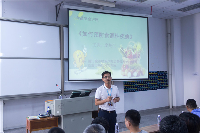 为增强学生的食品安全意识和自我保护意识,教育和引导学生养成良好的饮食习惯,5月29日,我校后勤管理处、团委联合厦门市市场监督管理局莲前市场监督管理所举办食品安全知识科普活动,并请该所主任廖贤生为我校师生作题为“如何预防食源性疾病”的专题讲座。校党委副书记王育培、校长助理王福龙及各总支书记、膳食管委会成员、学院在营食堂食品安全管理员、学生代表和医务人员等近300人聆听了讲座。