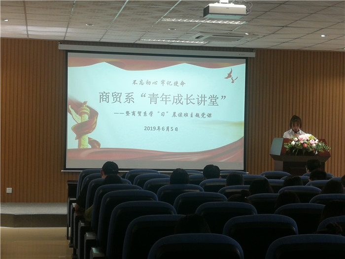 6月5日,福建省青年讲师团讲师、福建省医科大学马克思主义学院林明惠博士为商贸学子作了一场《在纪念五四运动100周年下,新时代大学生的责任担当》的党课。