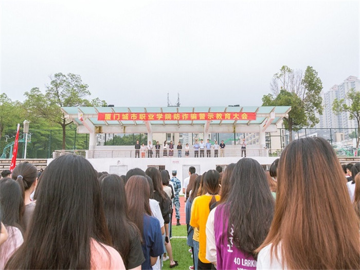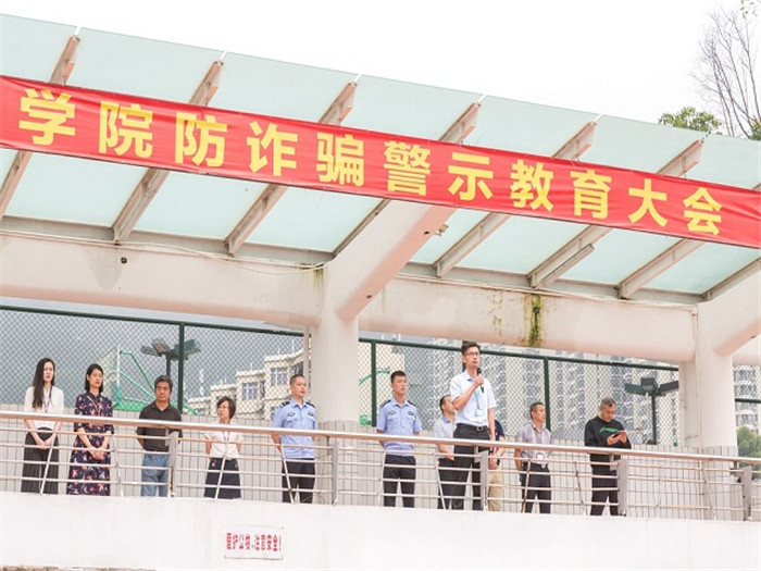 6月14日清晨,我校召开防诈骗警示教育大会。何厝边防派出所副所长陈志勇及相关民警,校党委副书记王育培,学工处、保卫处、团委部门负责人,各系党总支负责人,全校专兼职辅导员,2017级和2018级5000余名学生参加教育大会。