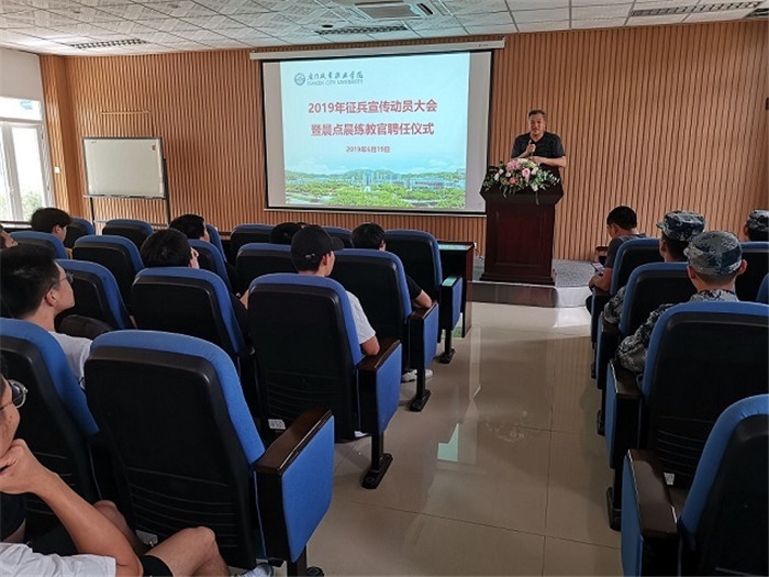 6月19日下午,我校2019年大学生征兵宣传动员大会暨晨点晨练教官聘任仪式在南校区敬业楼举行。思明区武装部代表,学生工作处、体育教研部等部门负责人,各院系相关辅导员以及有应征入伍意向的学生参加了大会。
