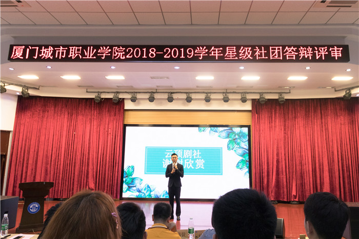 6月14日晚,我校在学生活动中心举办2018-2019学年星级社团答辩评审会。校党委副书记王育培,集美大学诚毅学院团委书记林伟毅、厦门团市委学少部部长助理周兆龙、校团委负责人和学生社团代表300多人一同观看了评审会。