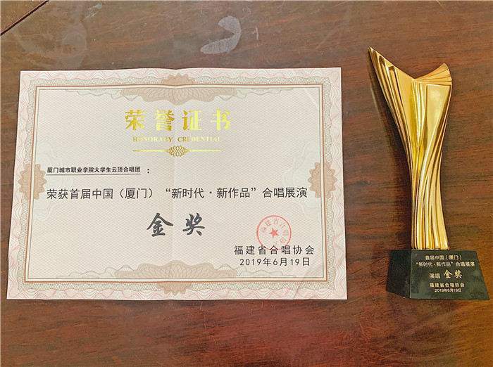 近日,在中国合唱协会指导、福建省合唱协会主办的首届中国(厦门)“新时代·新作品”合唱展演中,我校大学生云顶合唱团以出色的演唱水平和舞台表现摘得“合唱展演成年混声组”金奖。