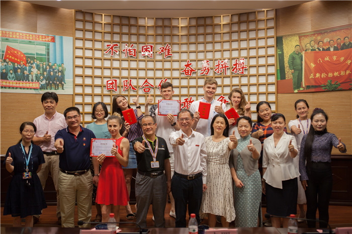 6月27日下午,我校举行了第二届留学生汉语学习班结业式。校长唐宁、副校长陈旭辉,国际职业教育学院负责人、汉语学习班留学生、任课教师及辅导员参加了结业式。