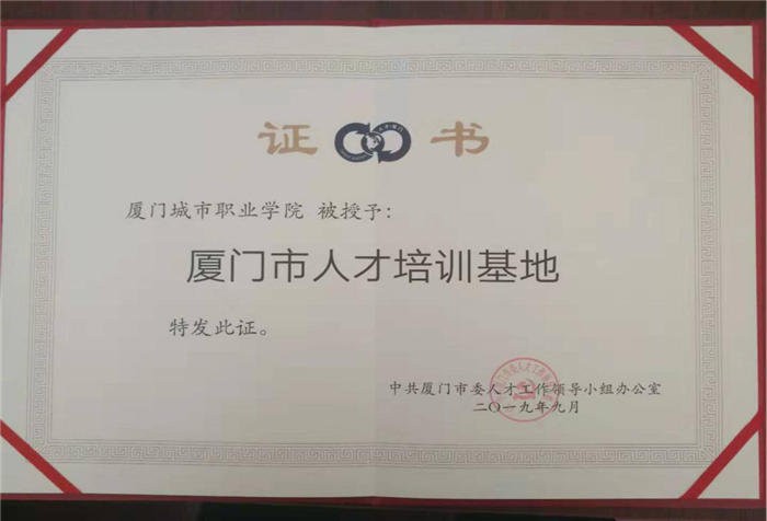 9月8日,我校被授予厦门市人才培训基地,成为首批获得认证的单位。